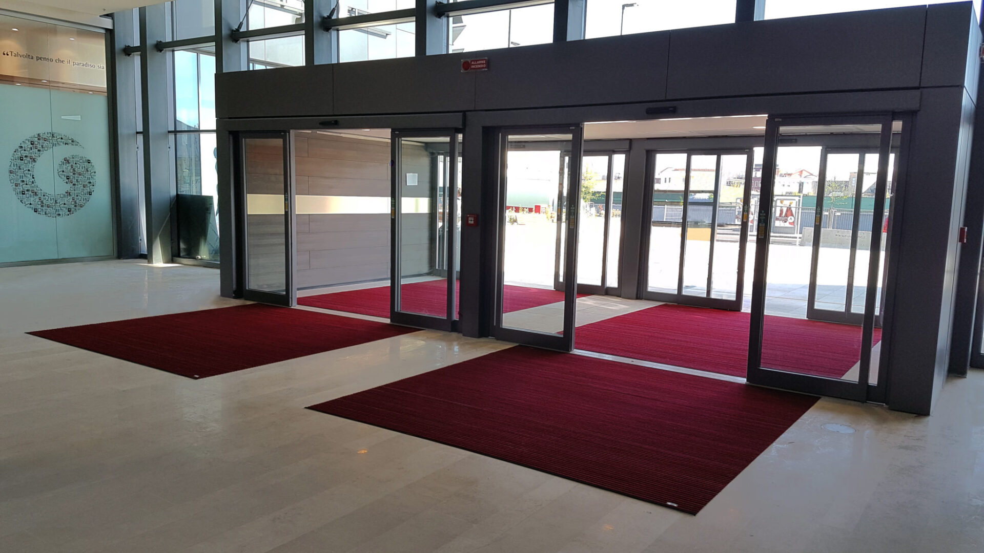 Siamo felici di condivere e presentarVi alcuni scatti ed un piccolo videoclip relativi ai nostri zerbini tecnici in alluminio Plate 17 in agugliato rosso posati nel mese di Marzo 2017 presso il Centro commerciale Adigeo a Verona.