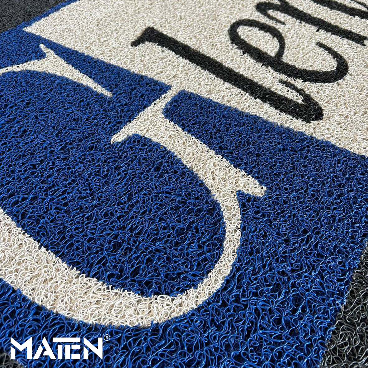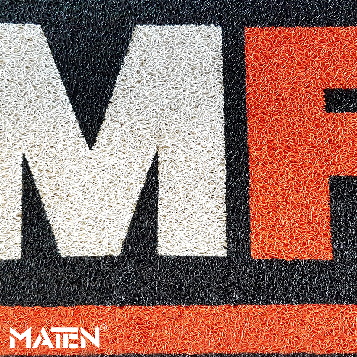 Dank der identischen Materialstärke aller Oberflächen und der Handwerkskunst unserer Fachleute können personalisierte Fußmatten sowohl aus einem einzigen Material gefertigt werden (z. B. Hintergrundfarbe in VELOURS mit Logo in VELOURS) als auch zwei, drei oder sogar alle vier Elemente miteinander kombinieren – so nutzen Sie die gesamte Farbpalette und die unterschiedlichen Materialeigenschaften optimal aus und schaffen eine Matte, die einzigartiger nicht sein könnte.