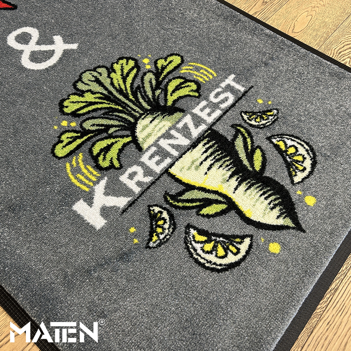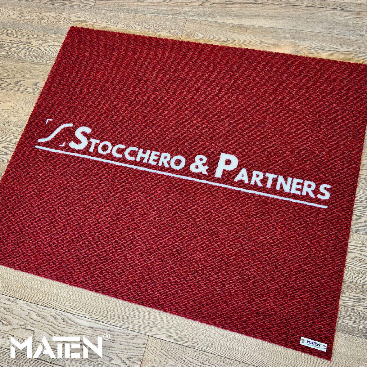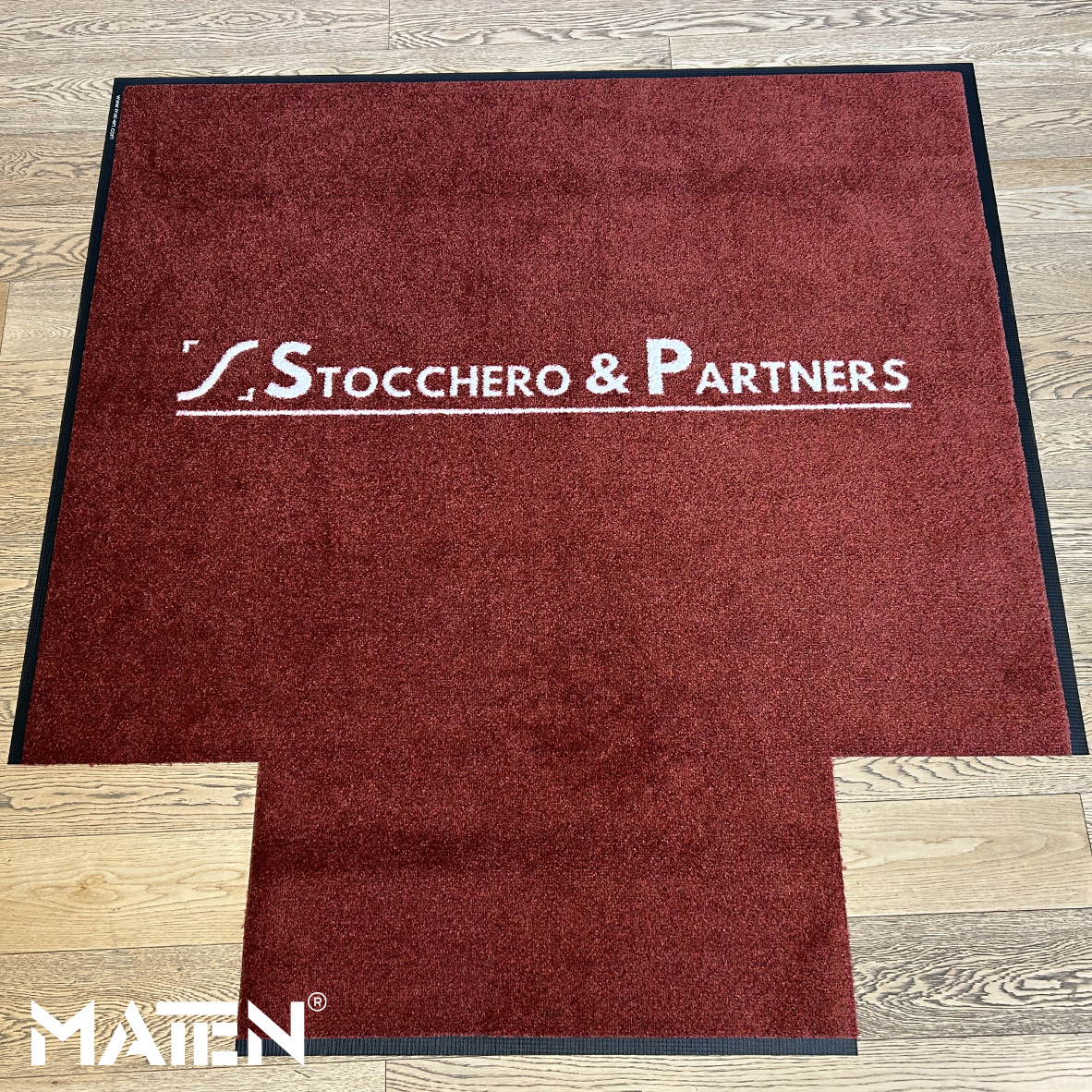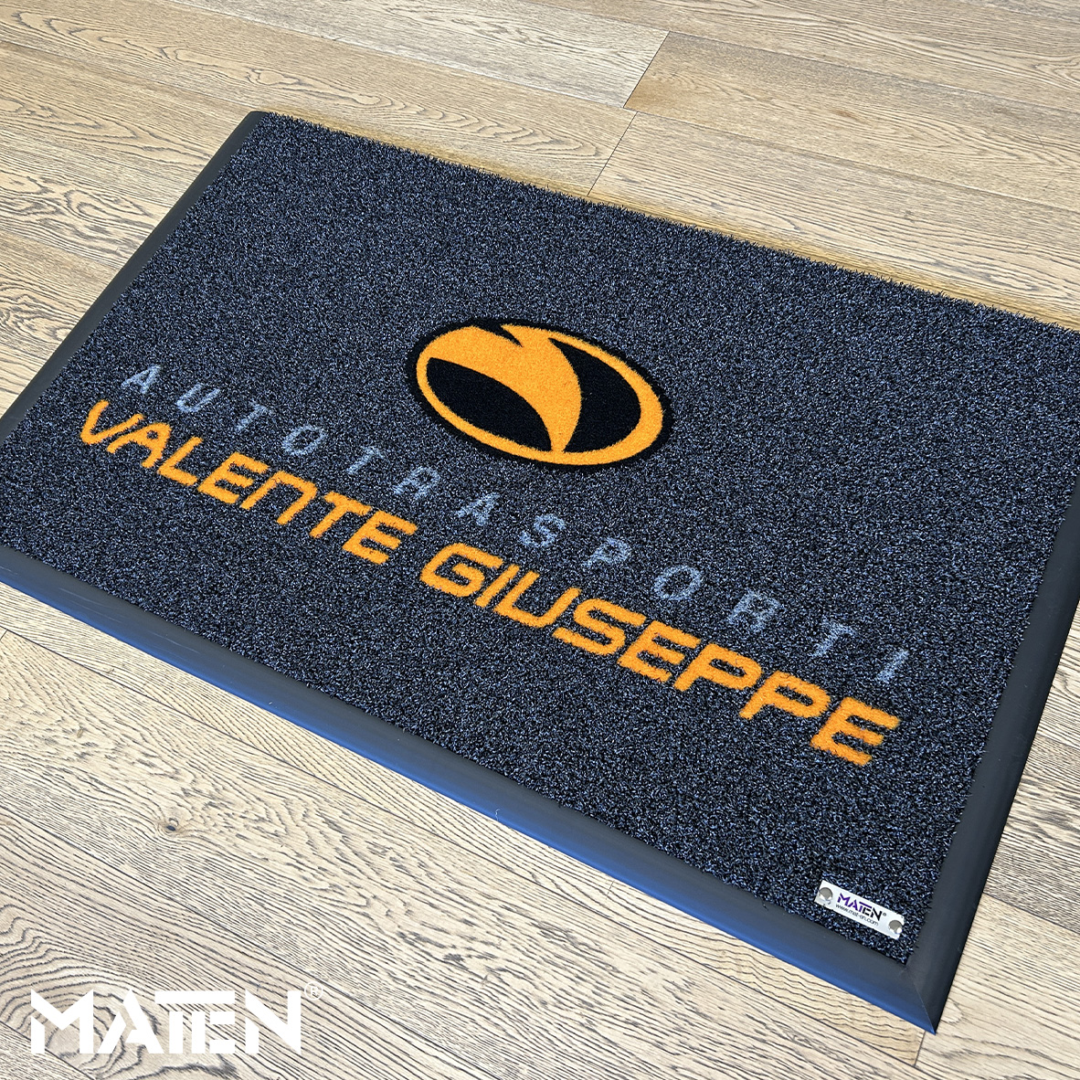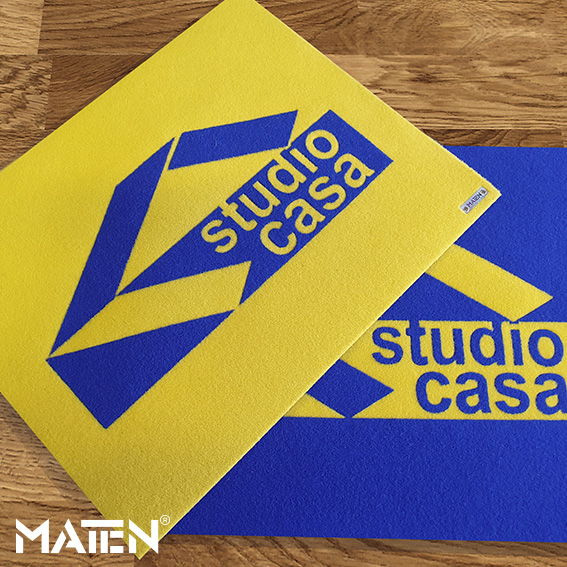 Grafiken und Logos werden mittels Intarsientechnik in die Matte eingearbeitet – das verleiht ihr ein edles Erscheinungsbild und macht die Personalisierung praktisch unverwüstlich.