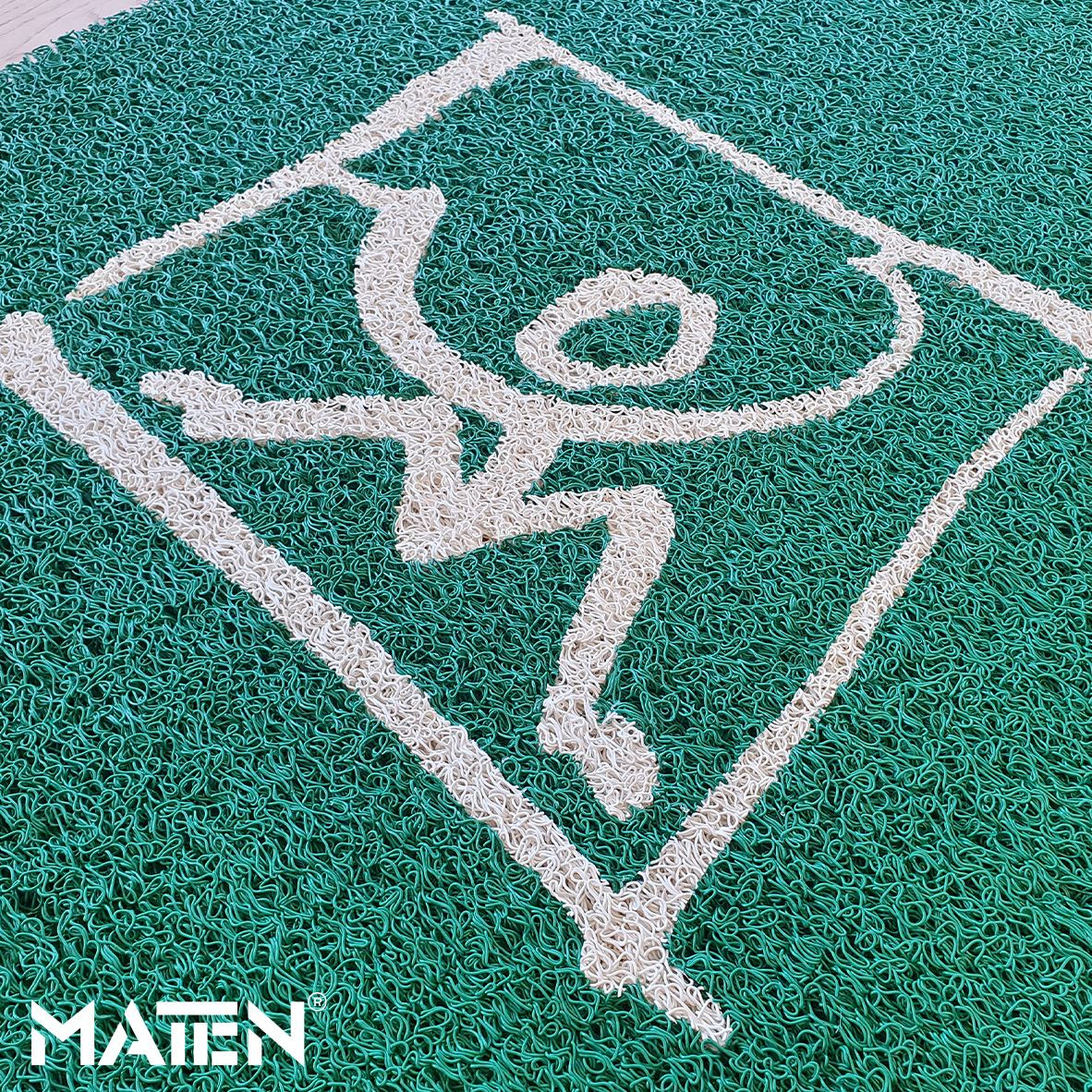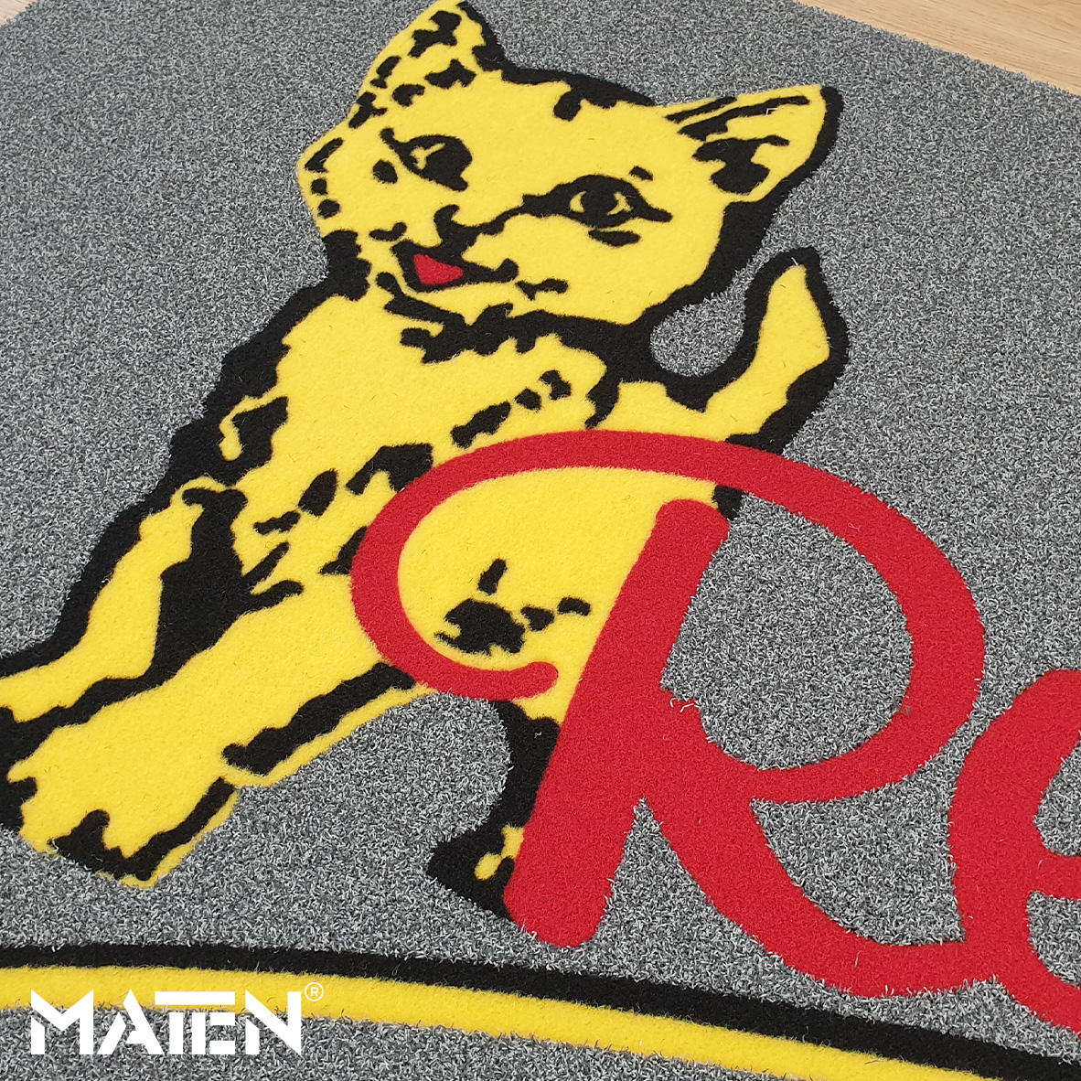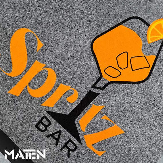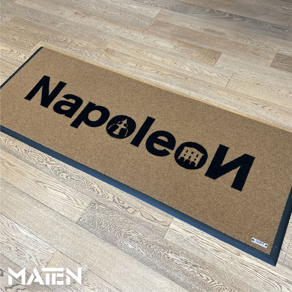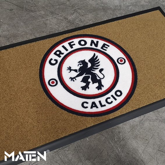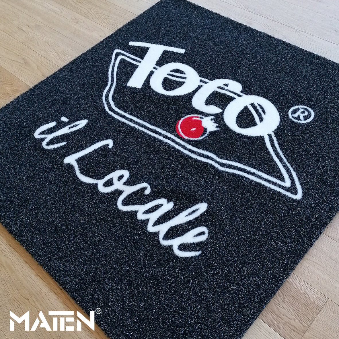 Grafiken und Logos werden mittels Intarsientechnik in die Matte eingearbeitet – das verleiht ihr ein edles Erscheinungsbild und macht die Personalisierung praktisch unverwüstlich.