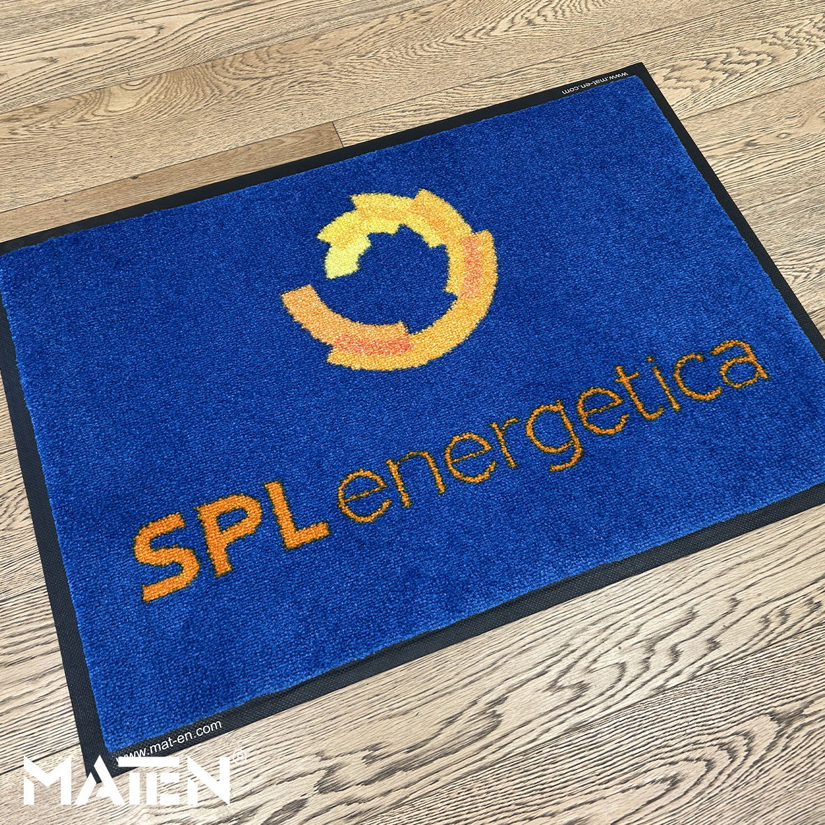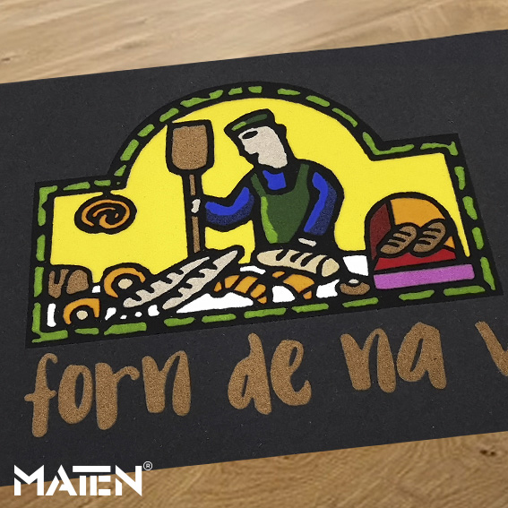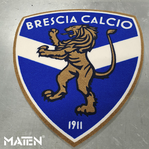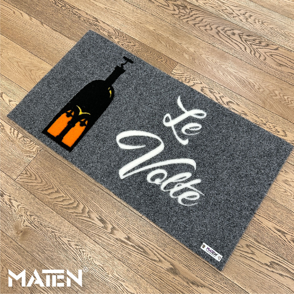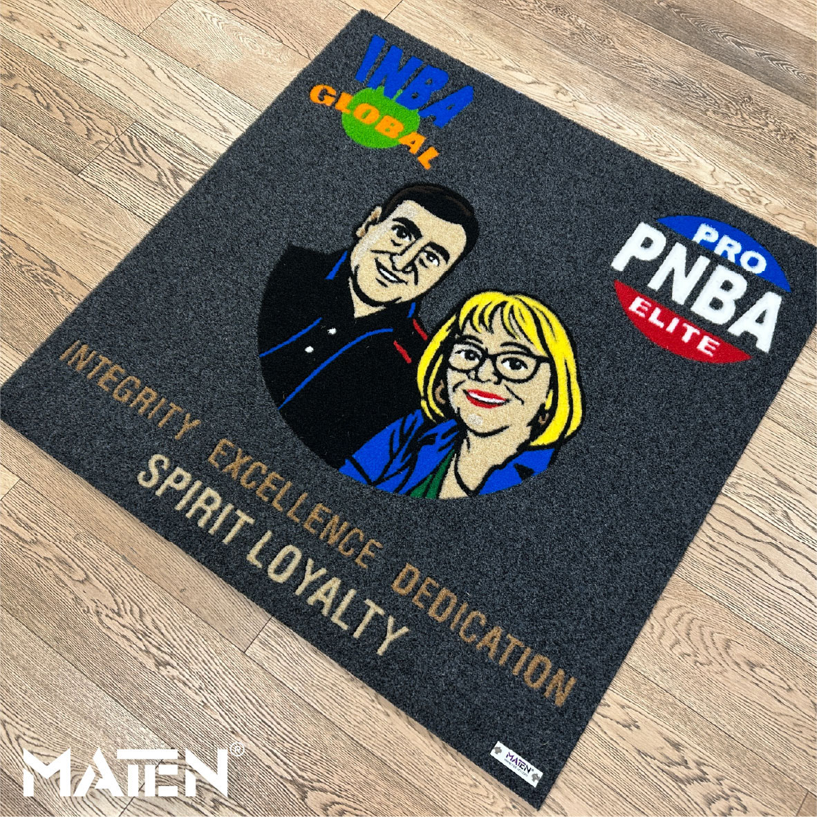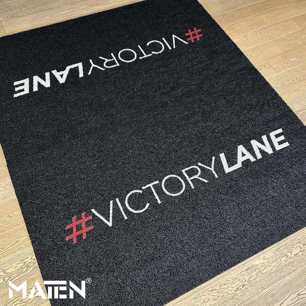 Grafiken und Logos werden mittels Intarsientechnik in die Matte eingearbeitet – das verleiht ihr ein edles Erscheinungsbild und macht die Personalisierung praktisch unverwüstlich.