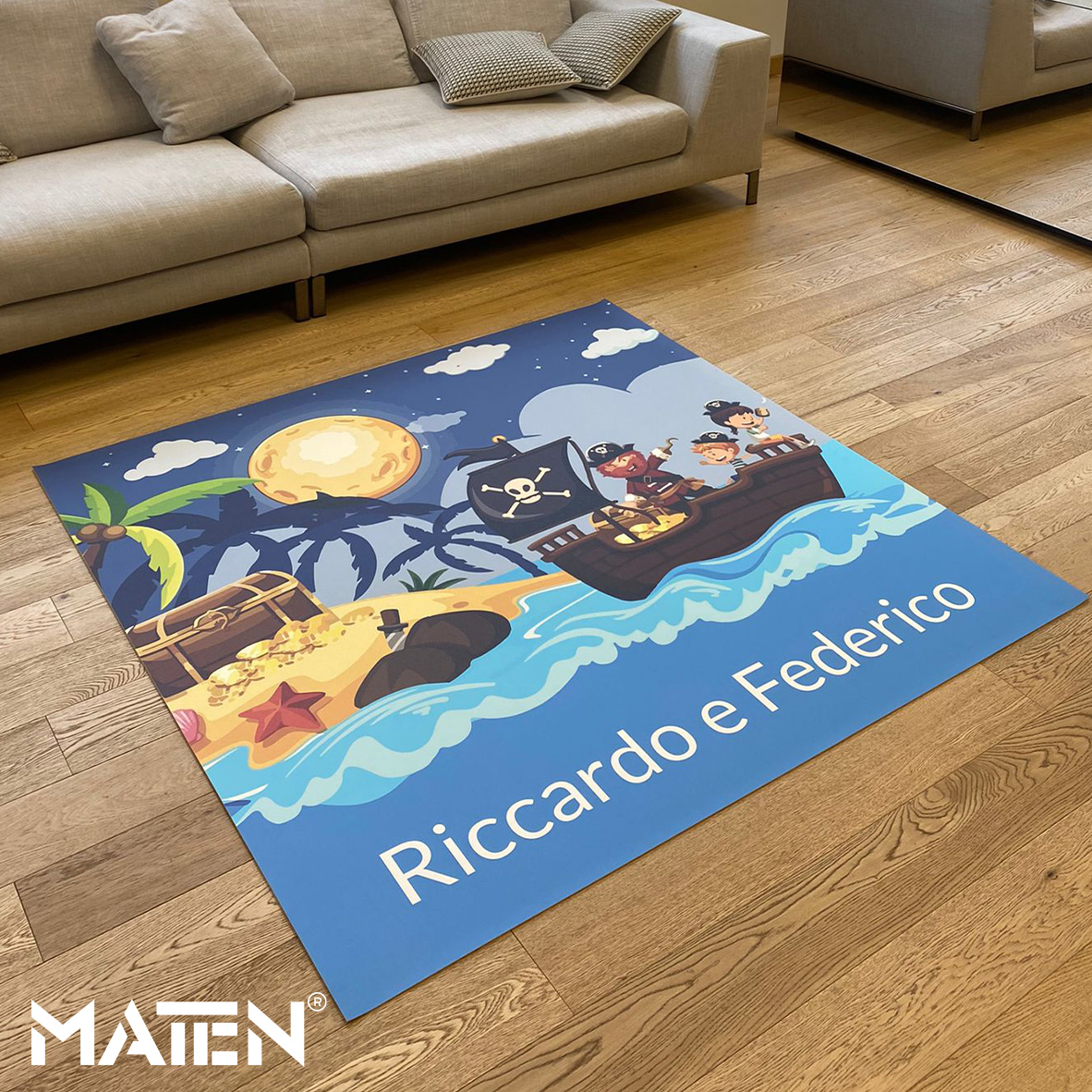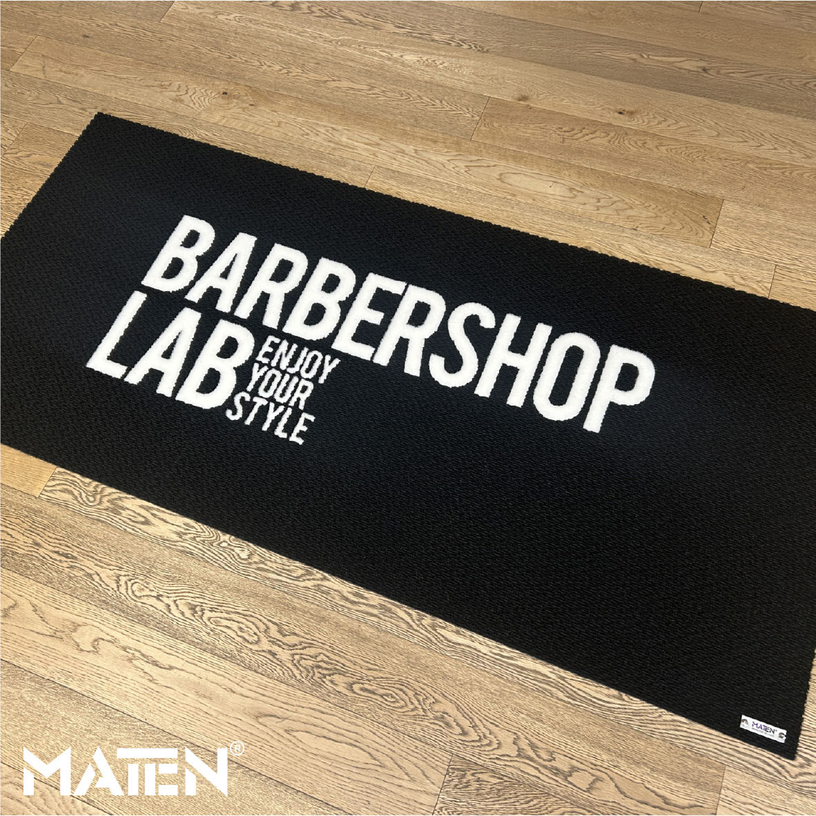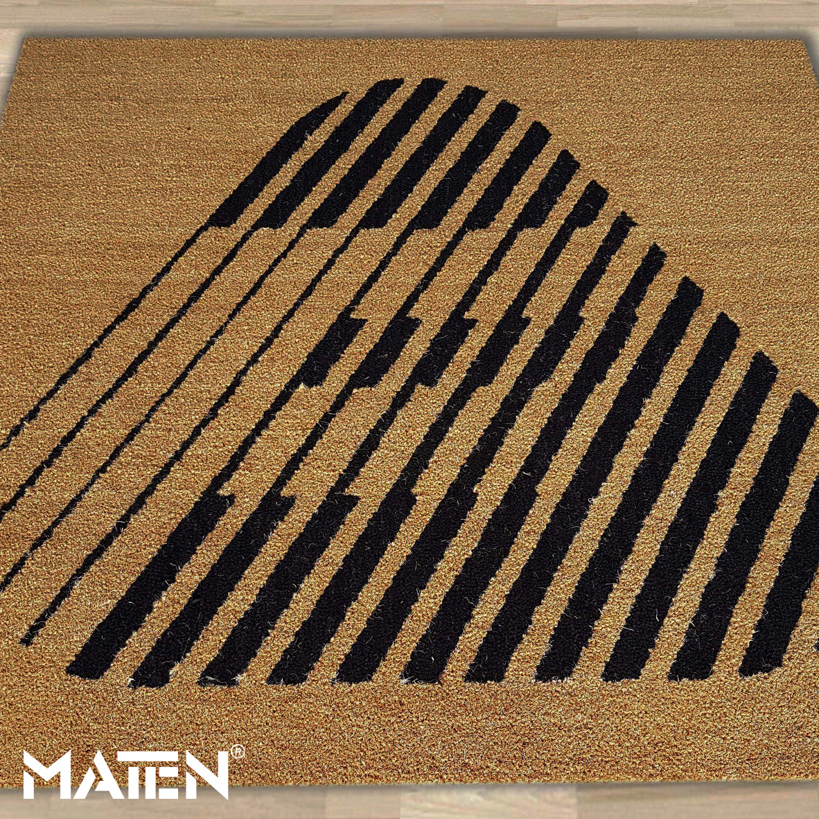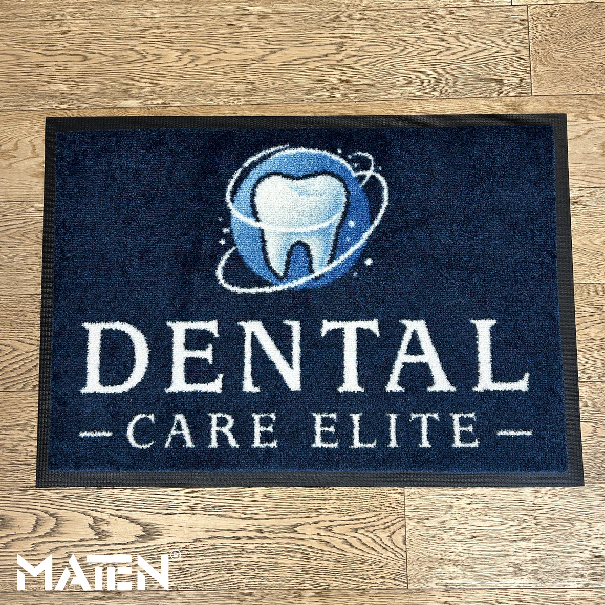 Grafiken und Logos werden mittels Intarsientechnik in die Matte eingearbeitet – das verleiht ihr ein edles Erscheinungsbild und macht die Personalisierung praktisch unverwüstlich.