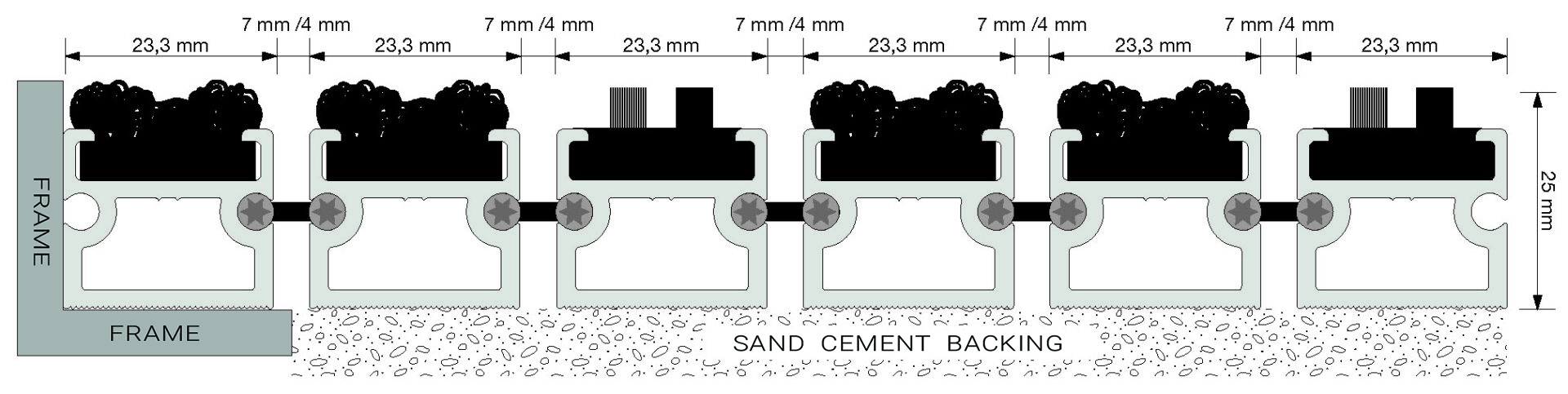 Distance between profilesStandard 7 mm (optional 4 mm)