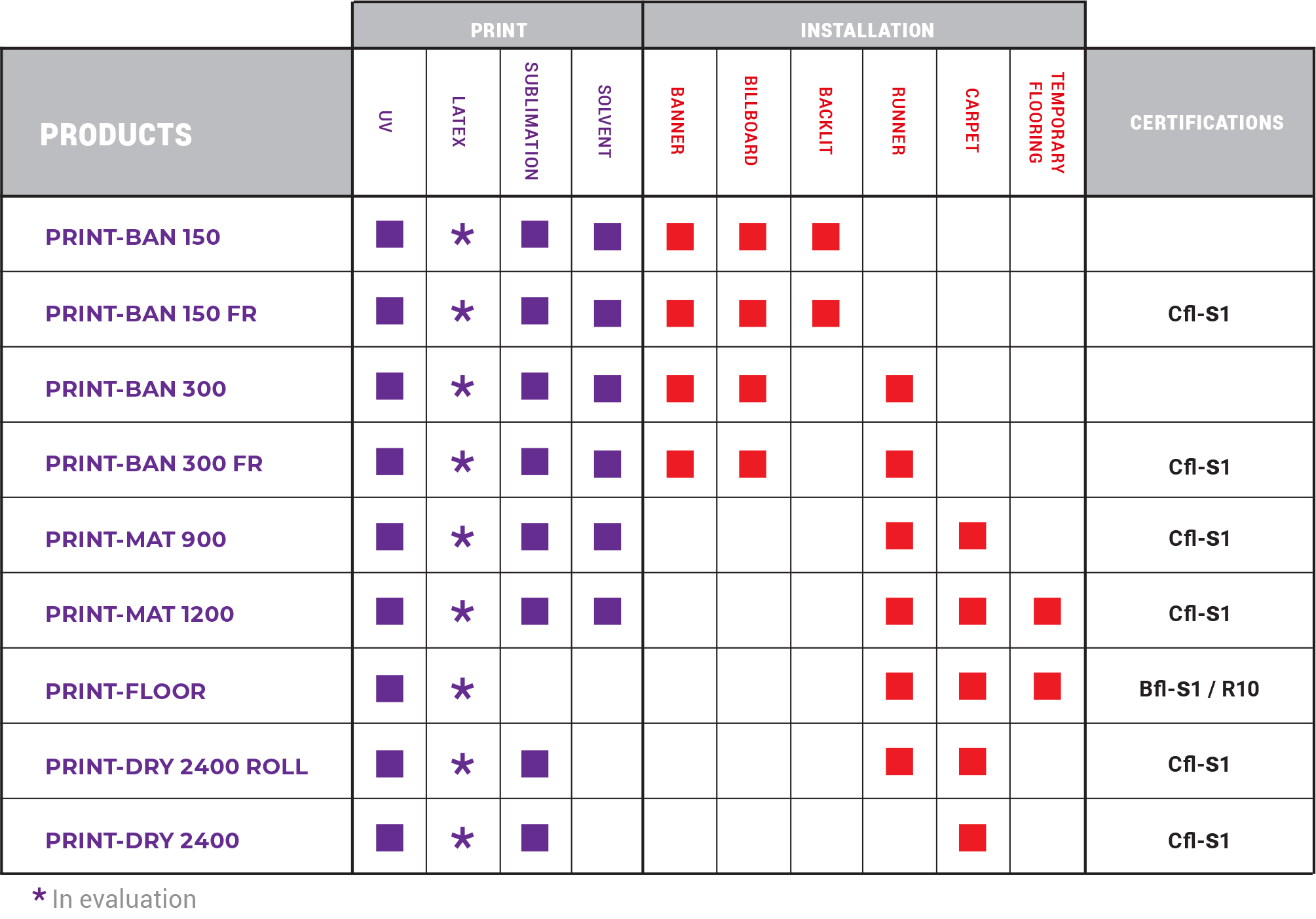 In the rage of products you can find: banner and eco banner, promotional felt and others support for the sublimation, perfect to realize flooring, underbike or others walkable with a strong visual impact.