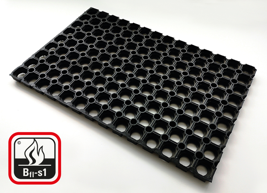L’utilizzo di ritardanti di fiamma ed una mescola particolare rendono la versione PLUS certificata al fuoco in classe Bfl-s1