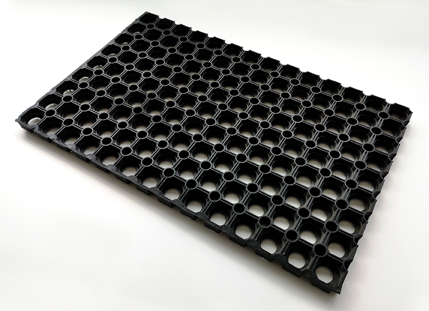 La piastra di GOMMA NATURALE DOMINO è realizzata in dimensione standard 150 x 100 cm. Può essere utilizzata in esterno in ingressi particolarmente esposti a neve o ghiaccio, all’interno come pedana antifatica o nelle cucine e dietro i banconi dei bar o sugli impianti di risalita nelle stazioni sciistiche. La piastra può essere tagliata o unita alle altre con appositi tappi di giunzione e può essere contornata con rampe antinciampo in alluminio.