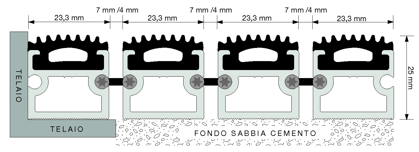 Distanza tra i profiliStandard 7 mm (opzionale 4 mm)