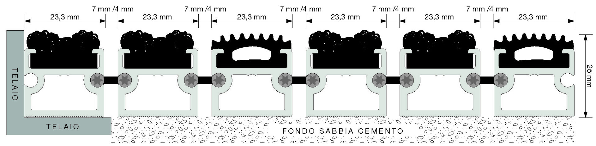 Distanza tra i profiliStandard 7 mm (opzionale 4 mm)