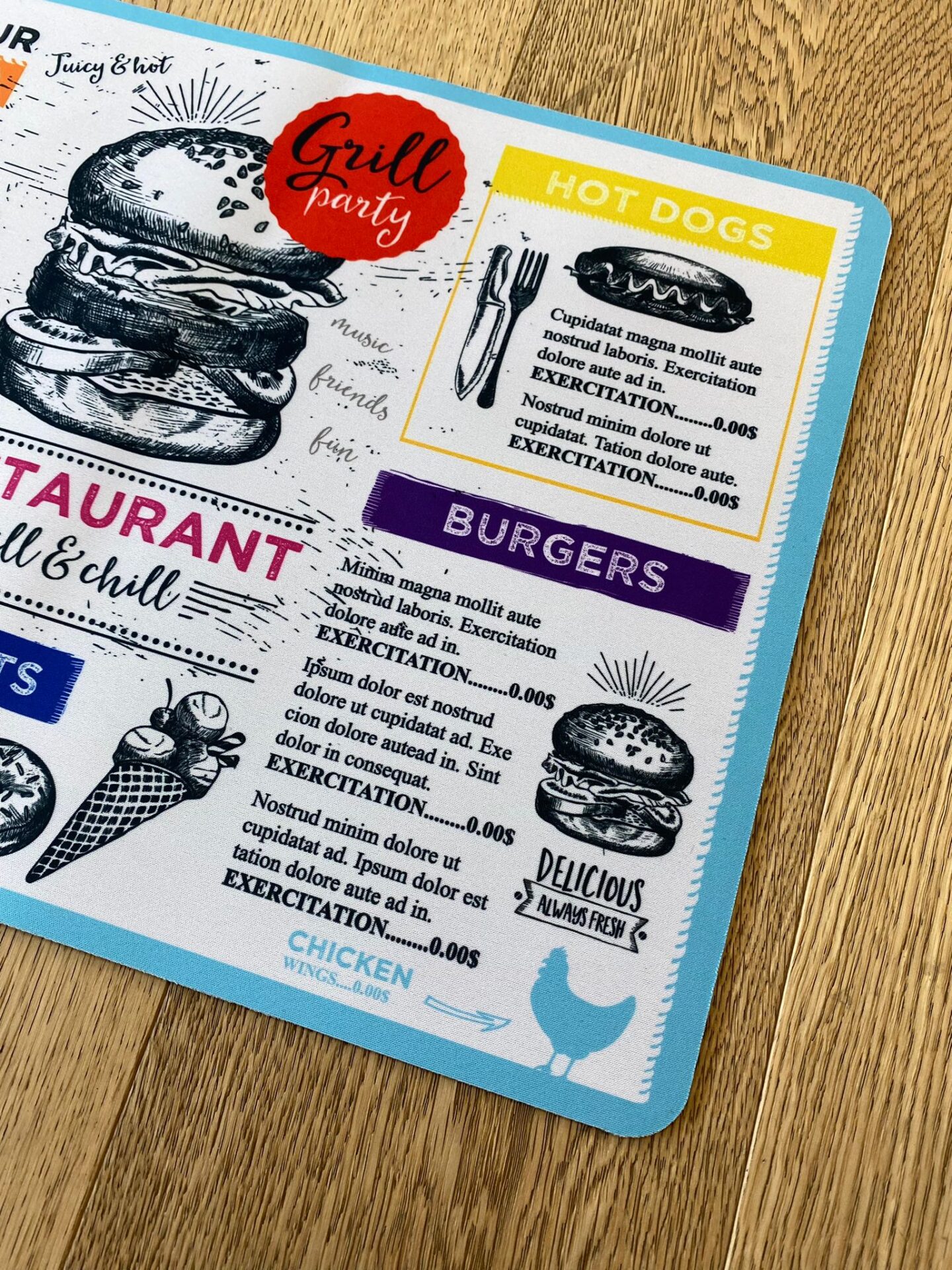 Vesuvio è un supporto estremamente versatile che permette, per esempio, la realizzazione di: tappetini mouse, sottobicchieri, tovagliette per la ristorazione, tappetini da gioco, tappeti per cani e gatti, bar-mat, passatoie per cucina e molto altro.