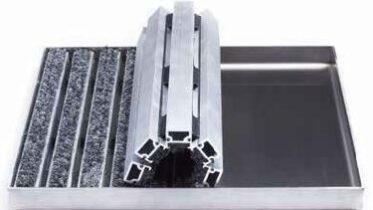 Le rampe in alluminio contenitive MAT.EN sono la soluzione più adatta per evitare gradini e rendere carrellabile gli zerbini tecnici.