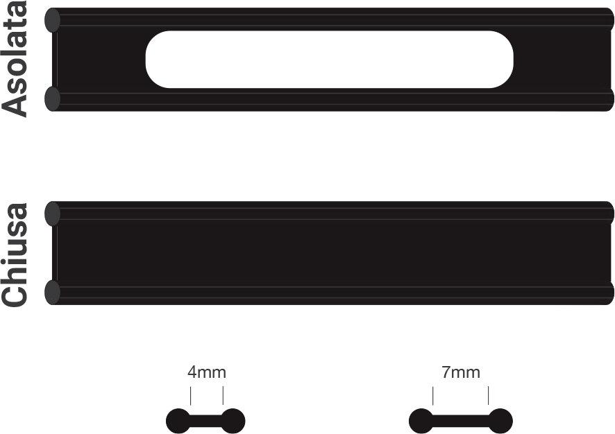 La larghezza di questo elemento incide sulla distanza tra i profili che può essere di 7mm (finitura standard) o 4mm ad eccezione dell’ articolo Plastik 17 disponibile solo con distanza 5mm.